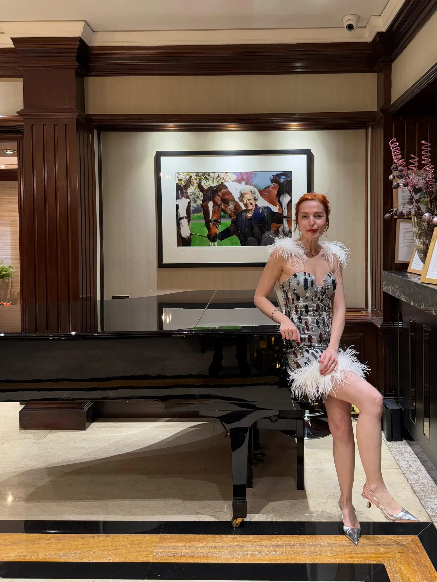 Geometrik Desen Tüylü Mini Elbise - Plumas Geometricas