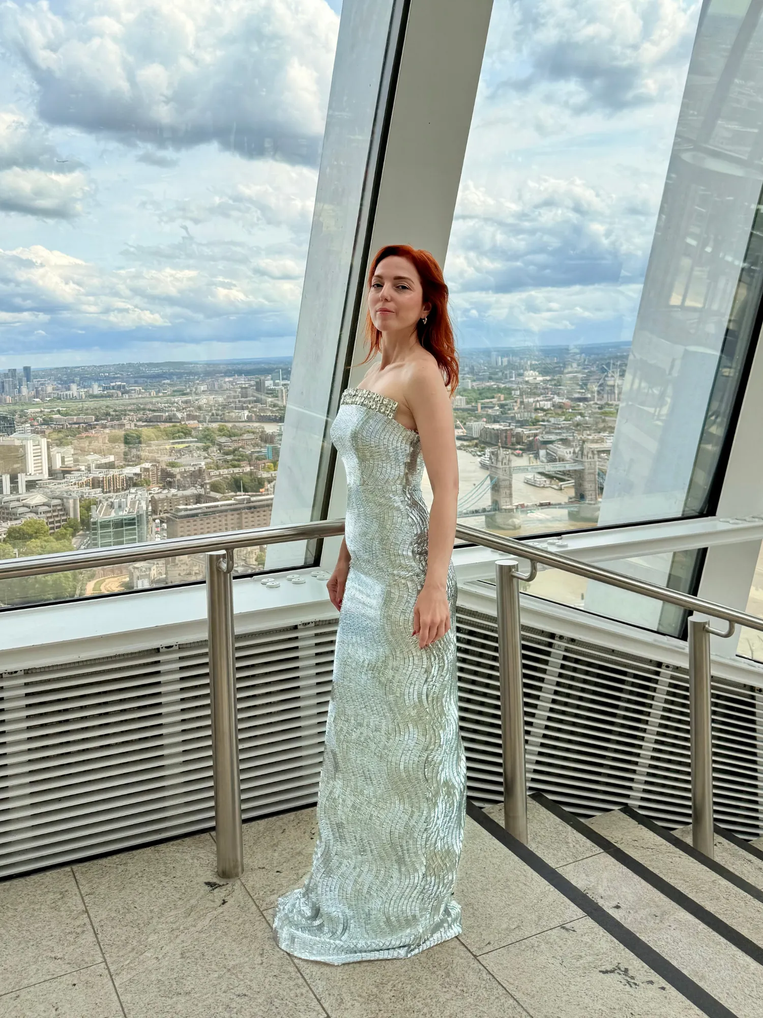 Işıltılı gri tonlar, taş detaylı yaka ve zarif silüet... Bu elbise abartısız bir ihtişam sunar. Anhelo imzası taşıyan bu tasarım, güçlü ve şık kadınlar için özel olarak tasarlandı. Gri ışıltılı kumaşı, ve taş detaylarla zenginleştirilmiş yakasıyla tüm bakışları üzerine çeker. Vücudu saran formu, zarif duruşunu vurgular. Bu elbise düğün davetleri, galalar, özel kutlamalar, after party'ler ve kırmızı halı şıklığı için idealdir. Işıltılı dokusunu tamamlamak için minimal takılar, topuklu stilettolar ve gümüş tonlarda bir clutch çanta ile kombinleyip geceye şıklık katın. Işıltılı ve zarif görünüm arayanlar, feminen silüeti vurgulamak isteyenler ve zamansız şıklığı modern çizgide sevenler için tasarlandı. Her dikişi, her taş seçimi, seni özel hissettirmek için düşünüldü. Çünkü Anhelo, sadece giydiğin değil, hissettiğin bir hayaldir.