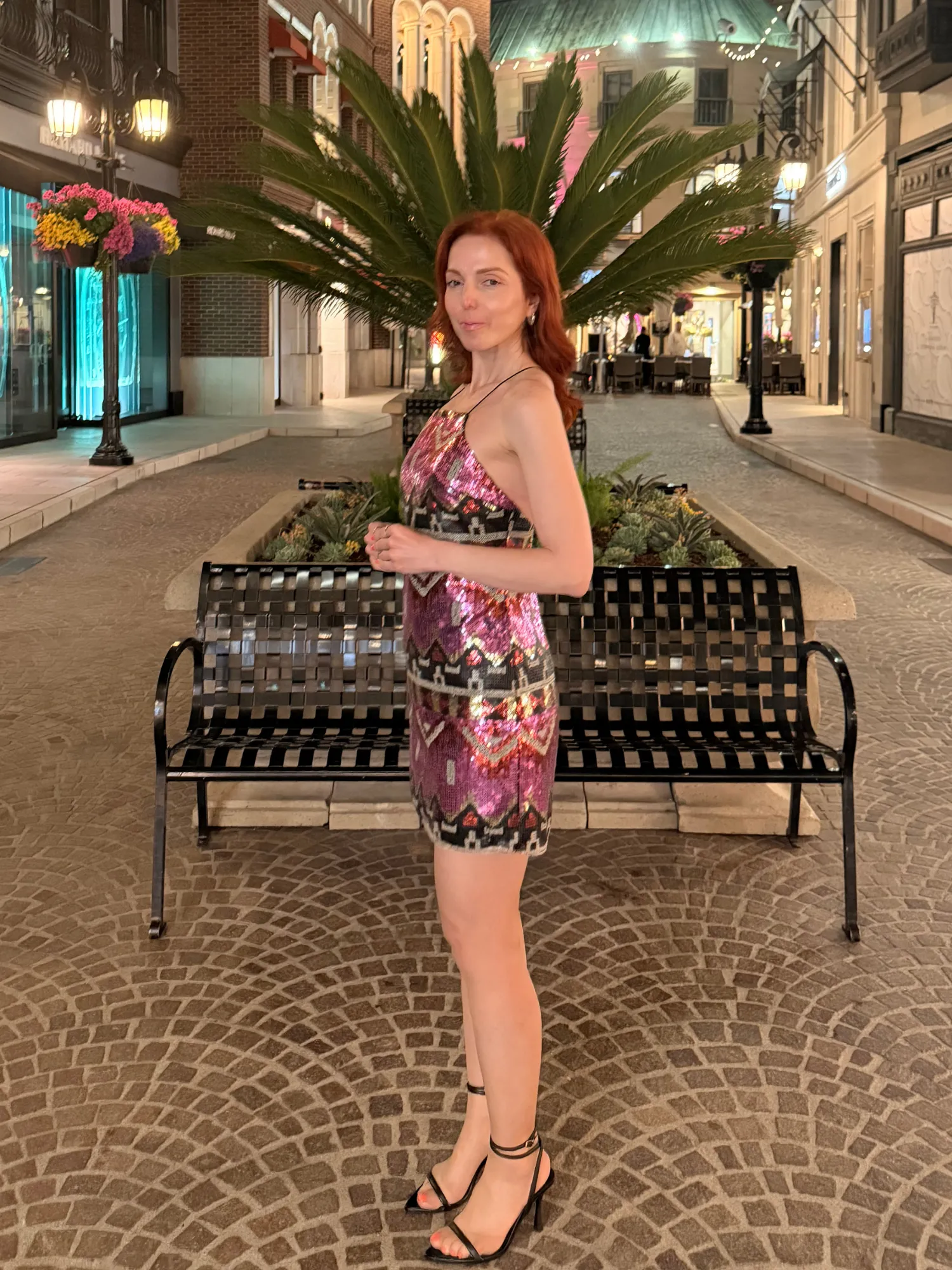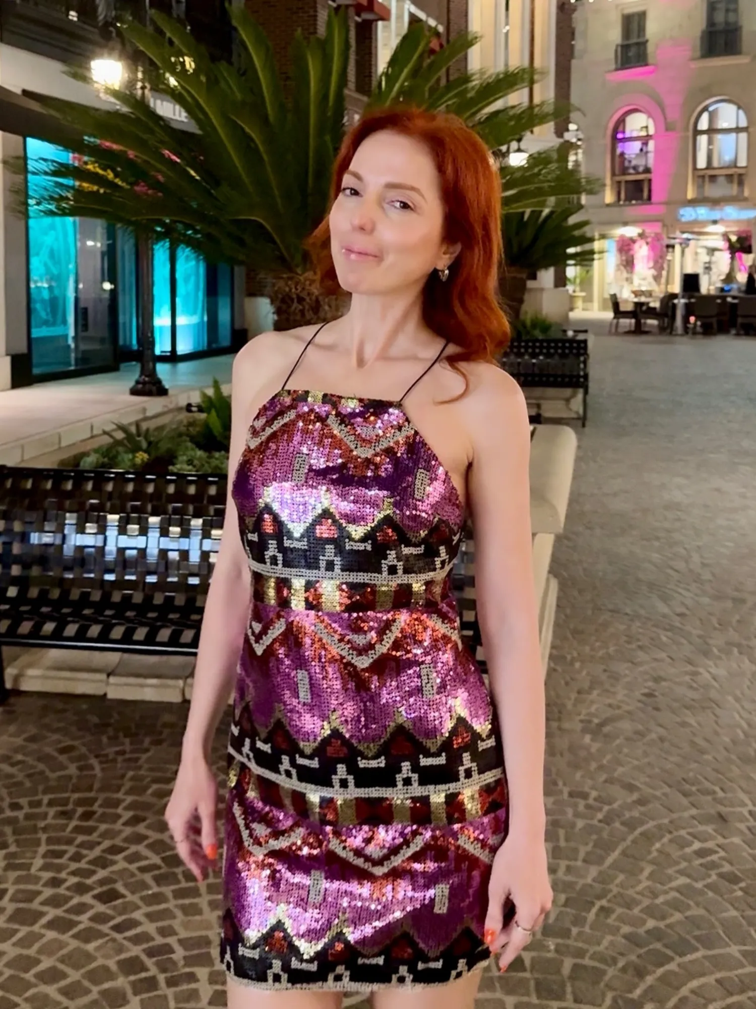 Hint Desenli, payetli, astarlı, askı detaylı mini elbise. Desenin ve renklerin birbiri ile muhteşem uyumu. Mezuniyet, balo, after party veya doğumgünü partilerinde giyilmesi için tasarlandı. Hafif rahat kalıp formu ile üzerinizden çıkarmak istemeyeceğiniz konforlu ve şık bir elbise. İster gündüz ister gece kullanım için ideal bir model.