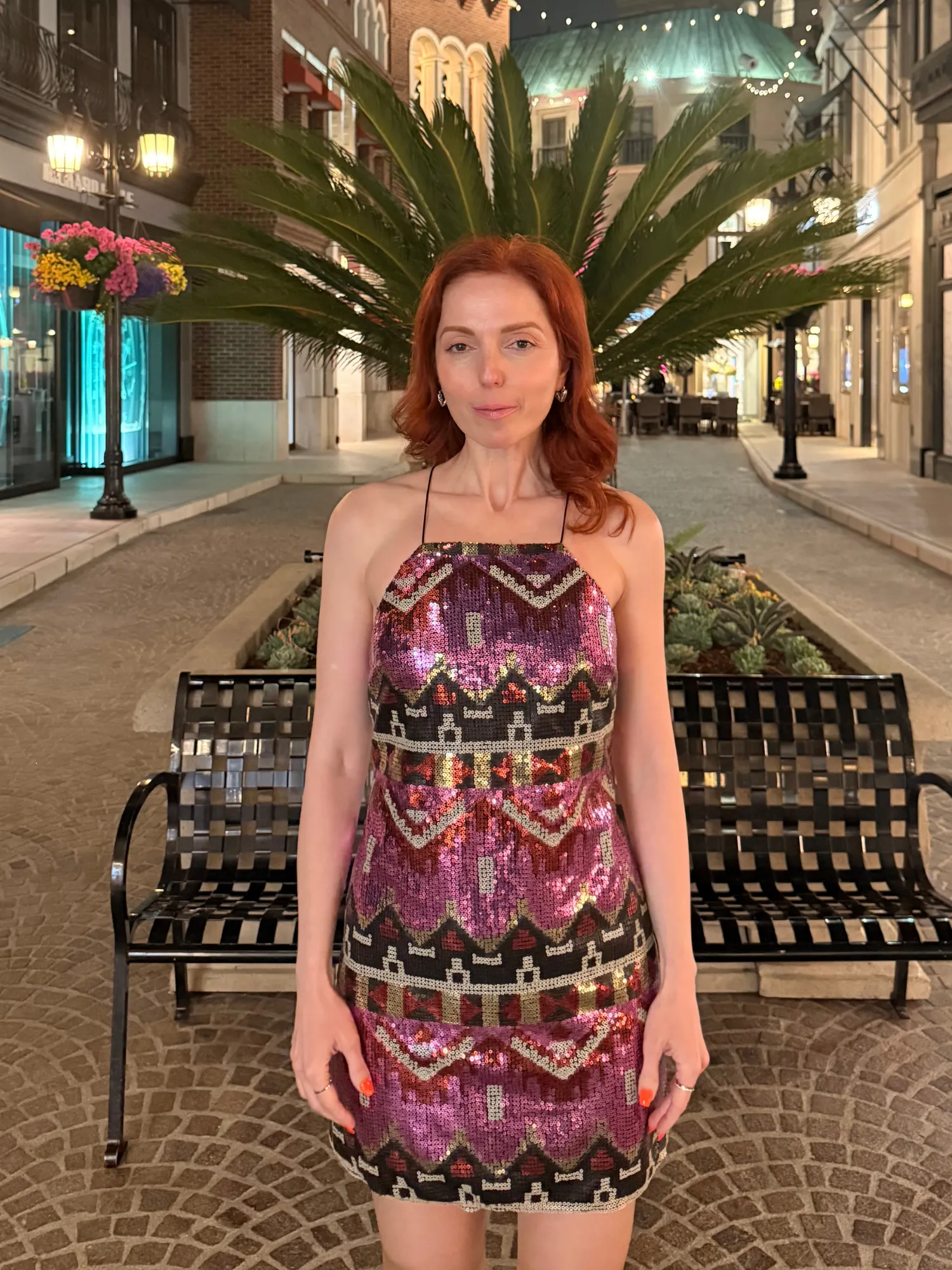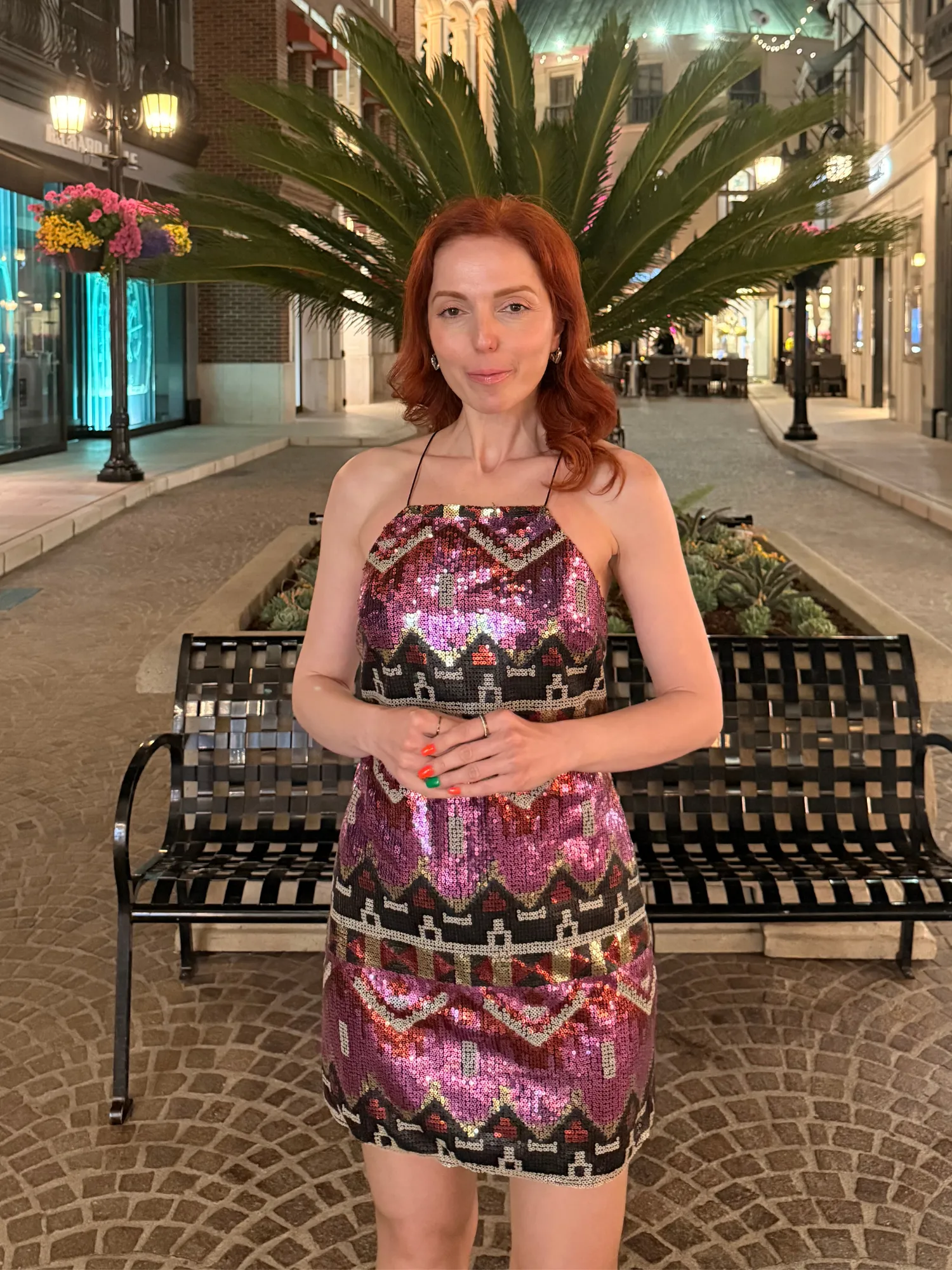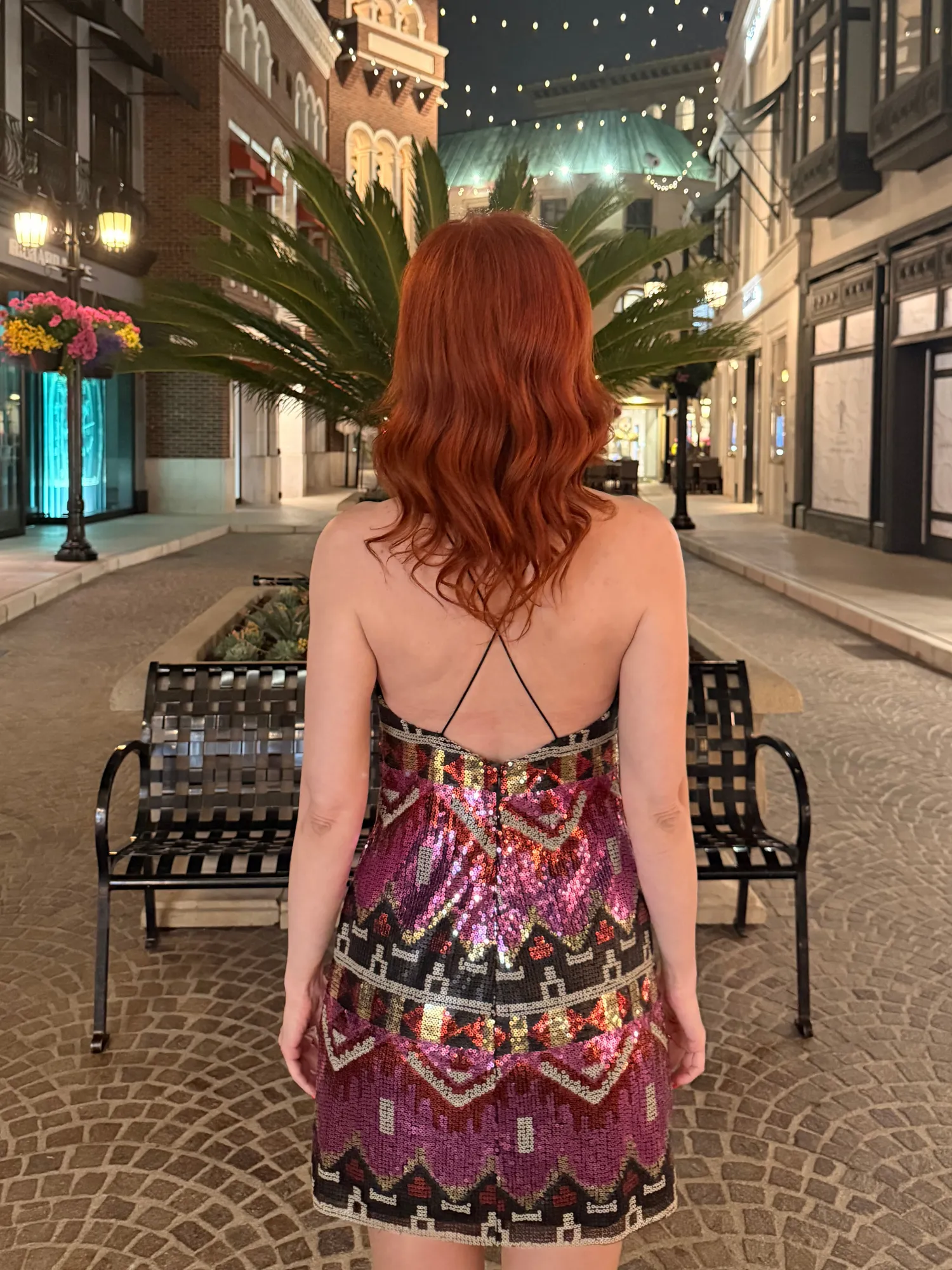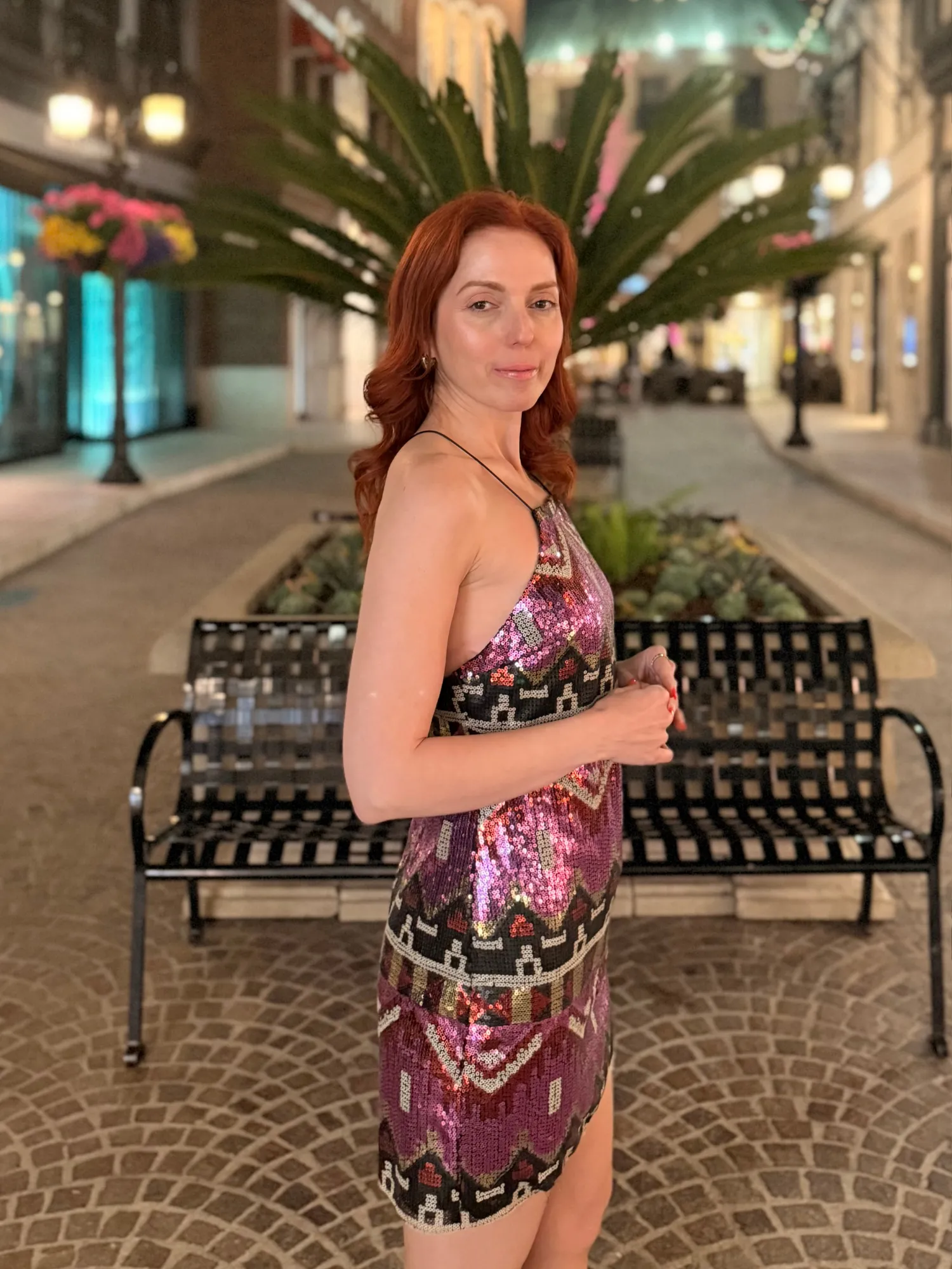 Hint Desenli Payetli Mini Elbise - Danza de Colores